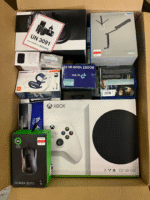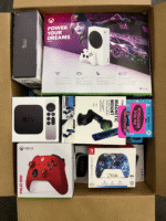 Boxes of liquidated target electronics. Boxes are sold at random and contain a mixed assortment of electronics like Xbox consoles, ps5 consoles, laptops/computers, iPads, Samsung tablets, amazon fire tablets, camera, apple watches, webcams, body cams, dash cams, AirPods, Bose, JBL, skull candy, and more including assorted chargers, phone cases, Power banks, controllers, radios, DVD players, & more. Merchandise is a mix of new, open box, and customer returns. All boxes are sold as is and there is no guarantees, exchanges, returns or refunds. No items are tested & everything is sold as is. Box can contain more or less than the price you pay for it, there are no guarantees, you are buying these at your own risk! However, the chance you get a box with a higher value than what you pay is greater . There is a 25% chance of getting a ps5 in this round of boxes. By purchasing this you agree to these policies