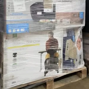Each pallet contains 400–600 items, including bonus items like office chairs and tables, making this deal even more valuable